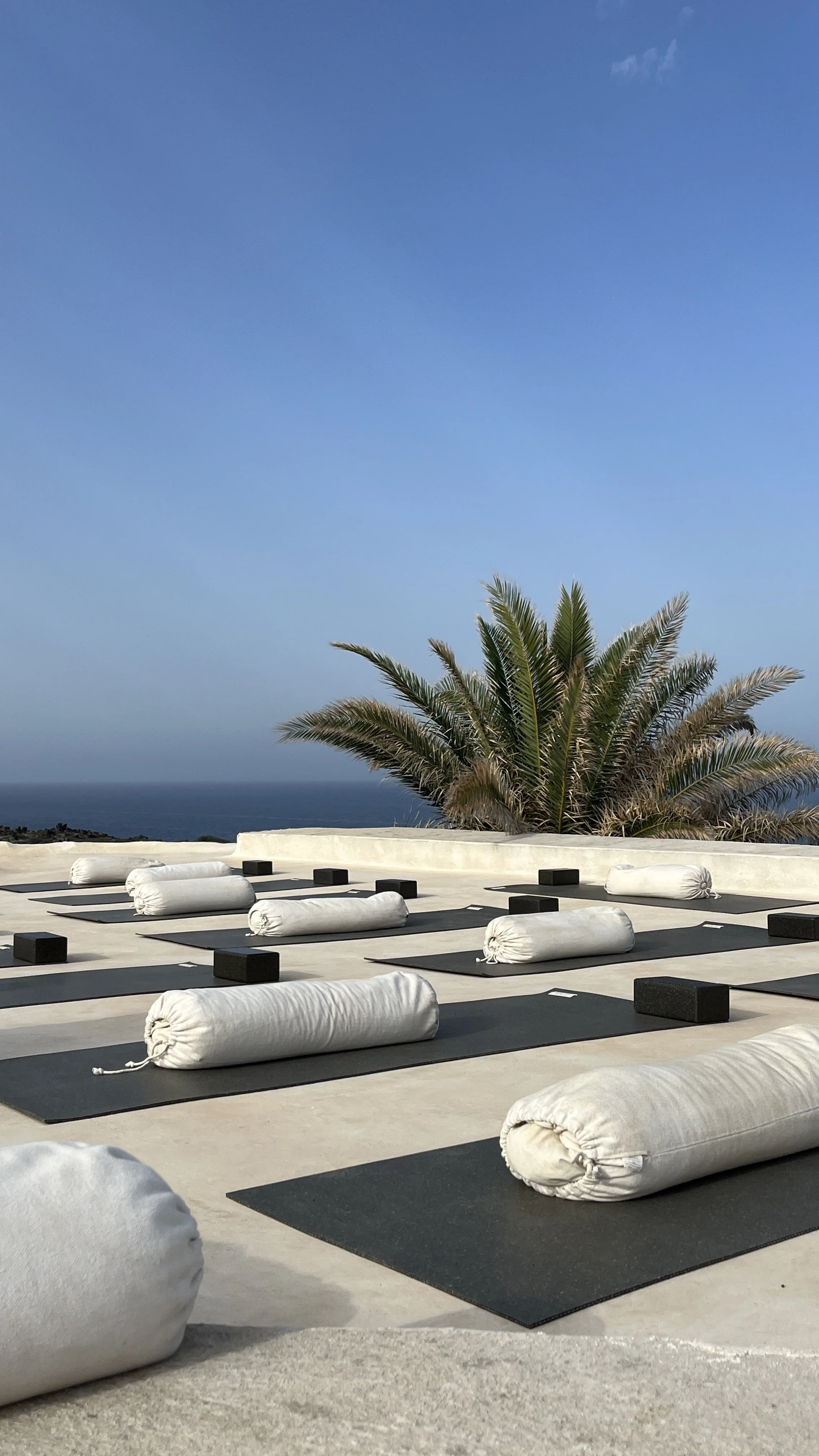 We put at disposition complete yoga props from the sustainable brand hej-hej. mats, bolsters, stripes, blocks for 18 guests so you do not have to travel with it.